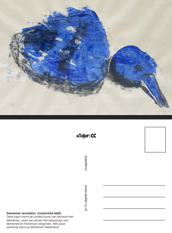 Deze kaart toont de unieke kunst van iemand met Parkinson en dementie. Laten we samen het bewustzijn van hersenziekten vergroten. Bestel vandaag nog je kaarten en steun tegelijkertijd een goed doel, Alzheimer Nederland!